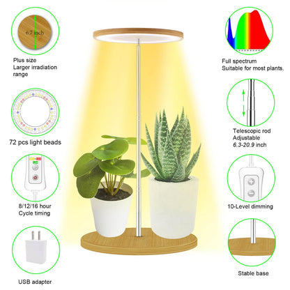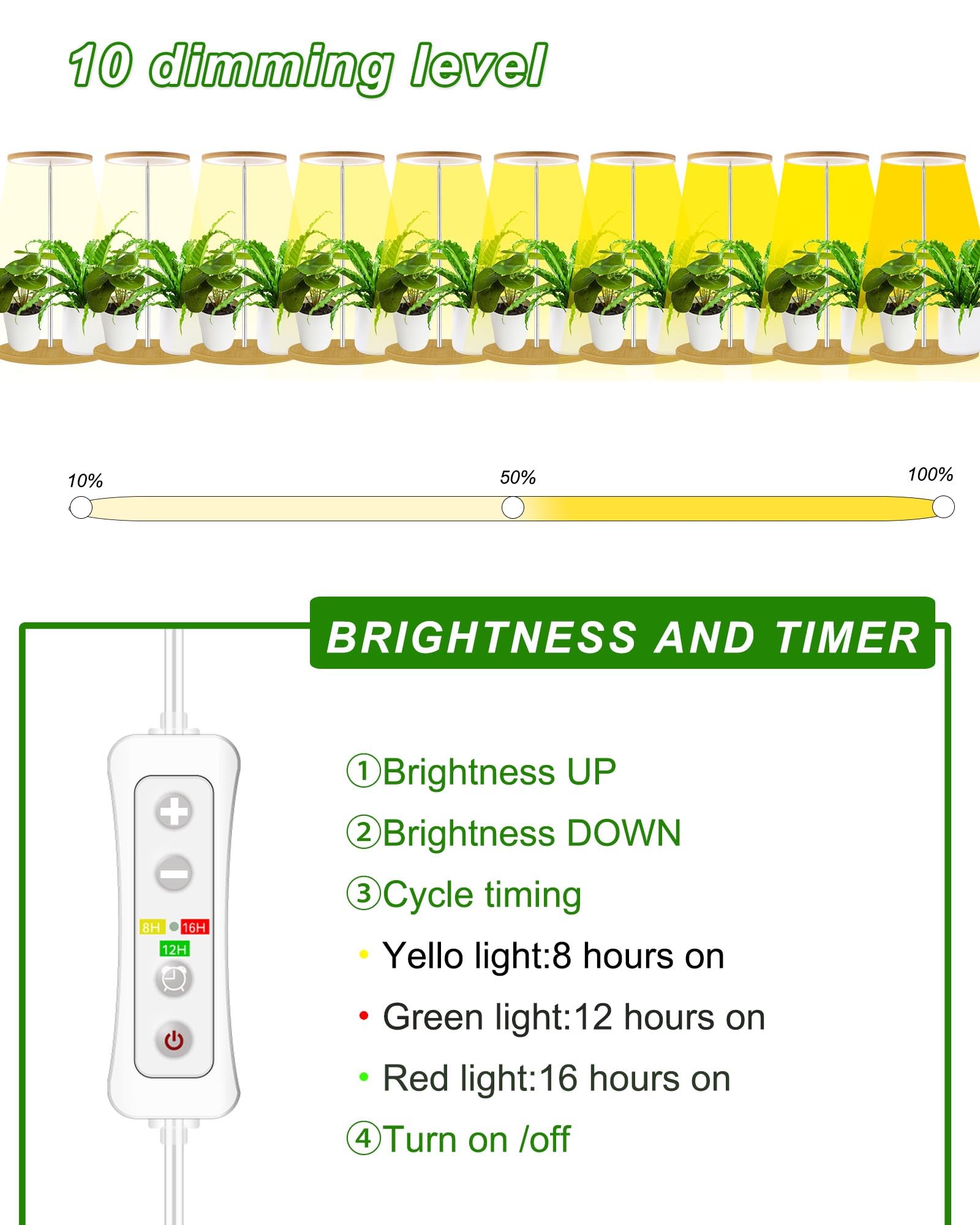 yadoker Plant Grow Light for Indoor Plant,Bamboo Mini LED Grow Light Garden,Height Adjustable,Automatic Timer with 8/12/16 Hours